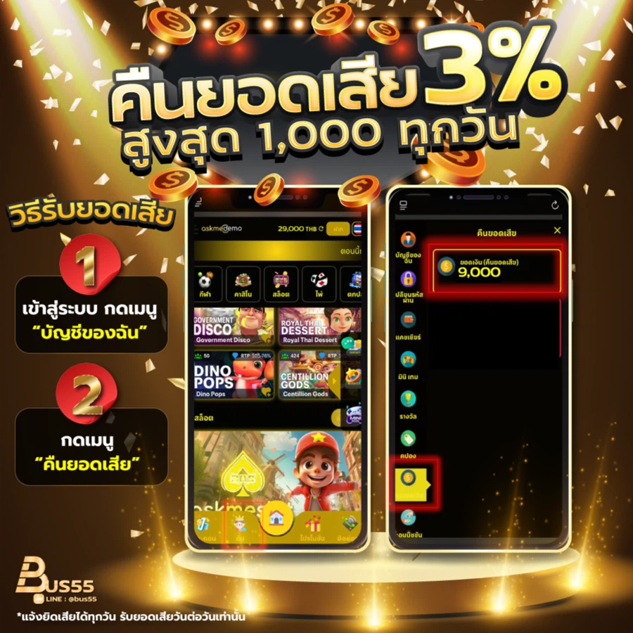 ตอบ : - โบนัสต้อนรับสมาชิกใหม่ 100% - คืนยอดเสีย 0.5% ทุกวัน - โบนัสวันเกิด - แนะนำเพื่อนรับค่าคอมมิชชั่น - กิจกรรมพิเศษตามเทศกาล